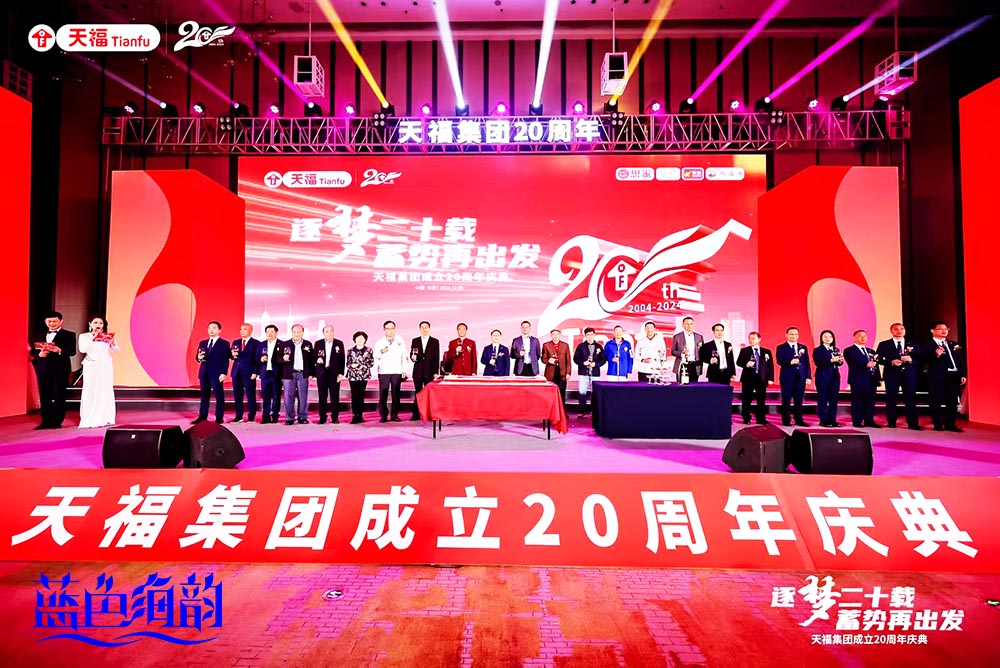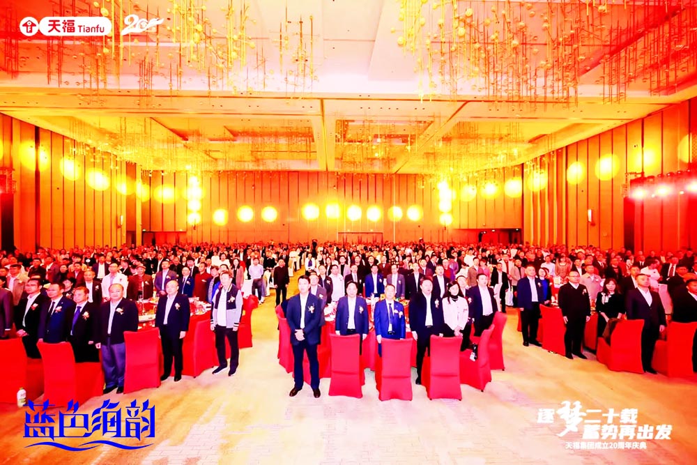 「藍色海韻」廣東省東莞市周年慶典禮儀活動策劃公司提供的演出公關廣告傳媒案例,2024年12月8日,天福集團舉行以“逐夢二十載,蓄勢再出發”為主題的集團成立二十周年慶典。各界領導嘉賓、來自全國各地的合作伙伴、門店代表等1000多人歡聚一堂,共同見證這一重要時刻,在過去二十年中所書寫的輝煌篇章,并展望其未來的宏偉藍圖。