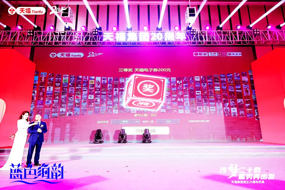 周年慶典活動在天福集團董事長熱情洋溢的歡迎辭中拉開帷幕,對所有出席活動的嘉賓表達了誠摯的感謝,并回顧了天福集團二十年來的艱辛創業歷程與取得的輝煌成就。本次周年慶典活動演出節目編排通過三個精彩篇章“看今朝”、“逐浪潮”、“向百年”展現了天福集團的發展全景。