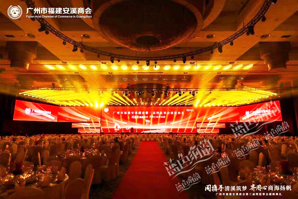 「藍色海韻」廣東省廣州市會議會務商會活動策劃禮儀慶典演出公關傳媒廣告會議會務公司專業服務執行案例,2024年12月22日“同攜手清溪筑夢·齊用心商海揚帆”廣州市福建安溪商會第三屆理監事會就職典禮在廣東省廣州市長隆國際會展中心成功舉辦,來自廣東省的領導代表、家鄉安溪縣的領導代表、廣東閩籍兄弟商會代表、全國異地安溪商會代表、社會各界嘉賓朋友及所有廣州市福建安溪商會理監事成員等千人齊聚羊城,共襄盛舉。